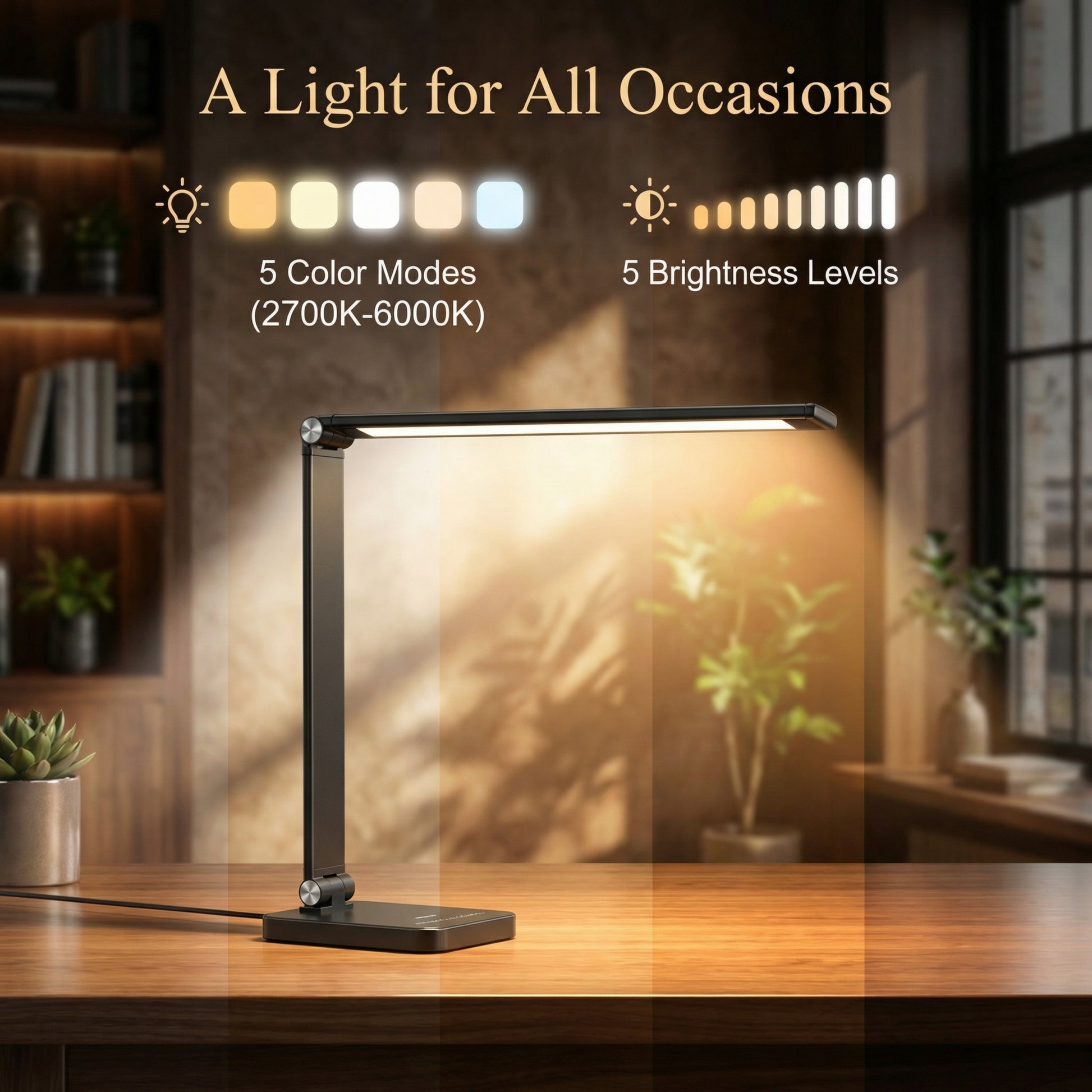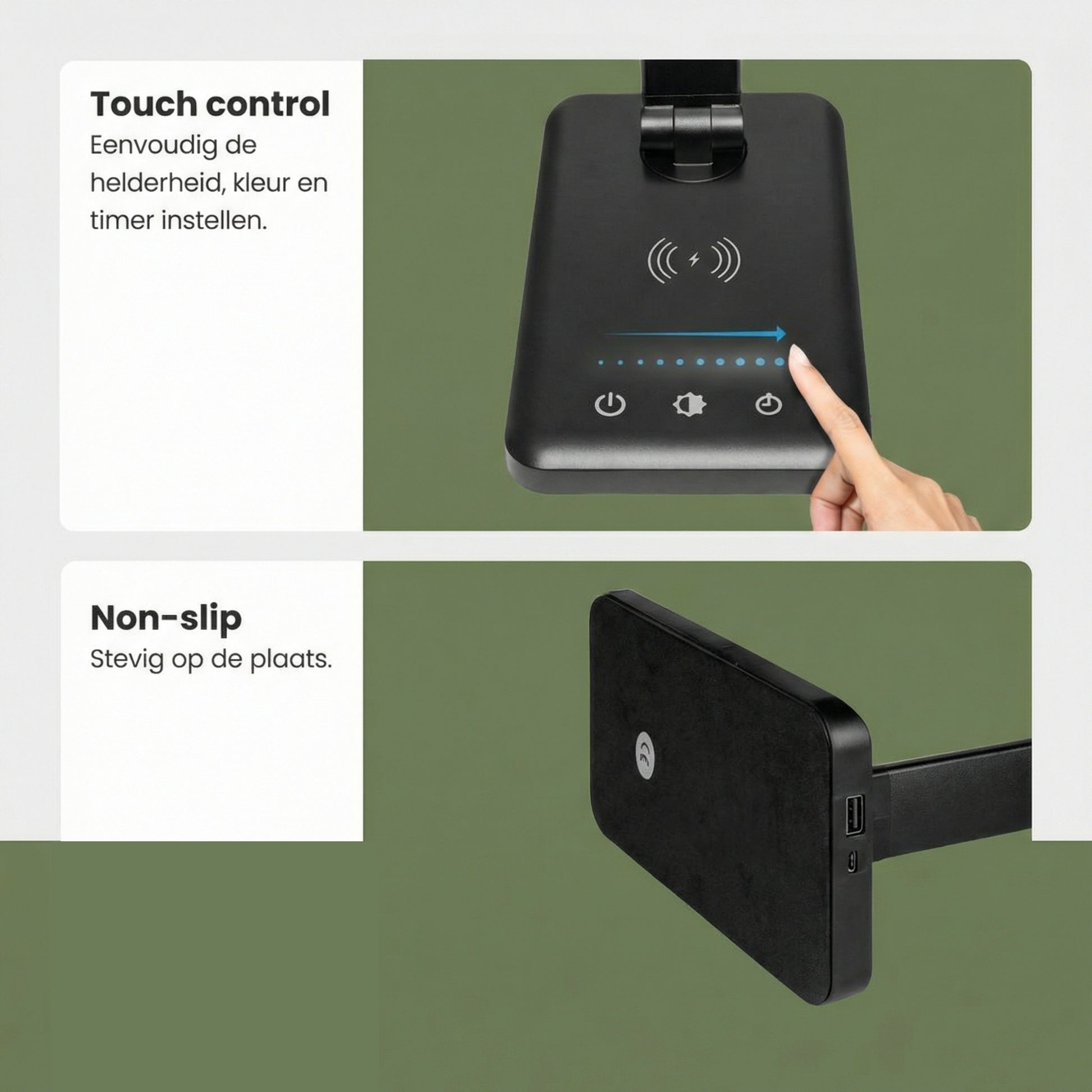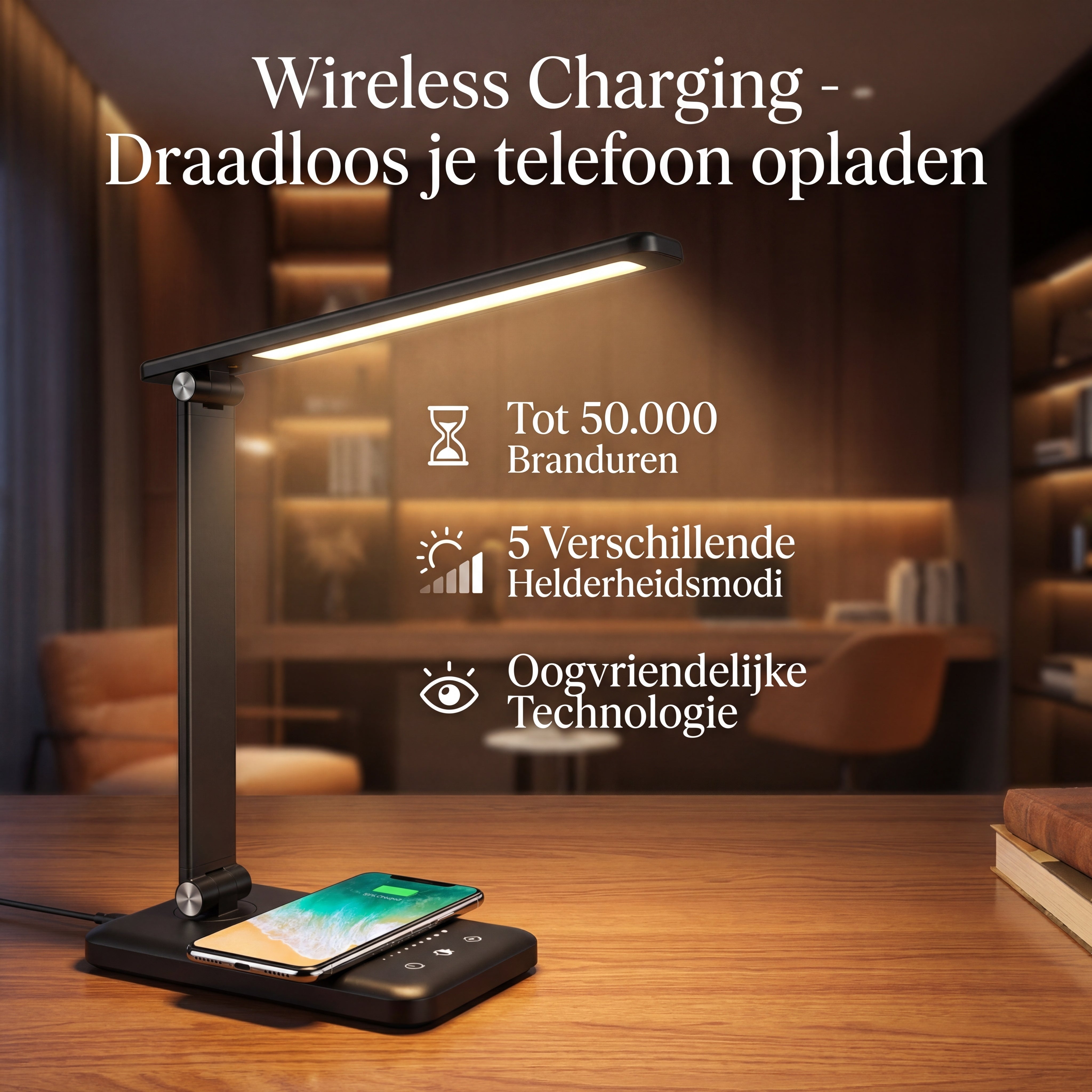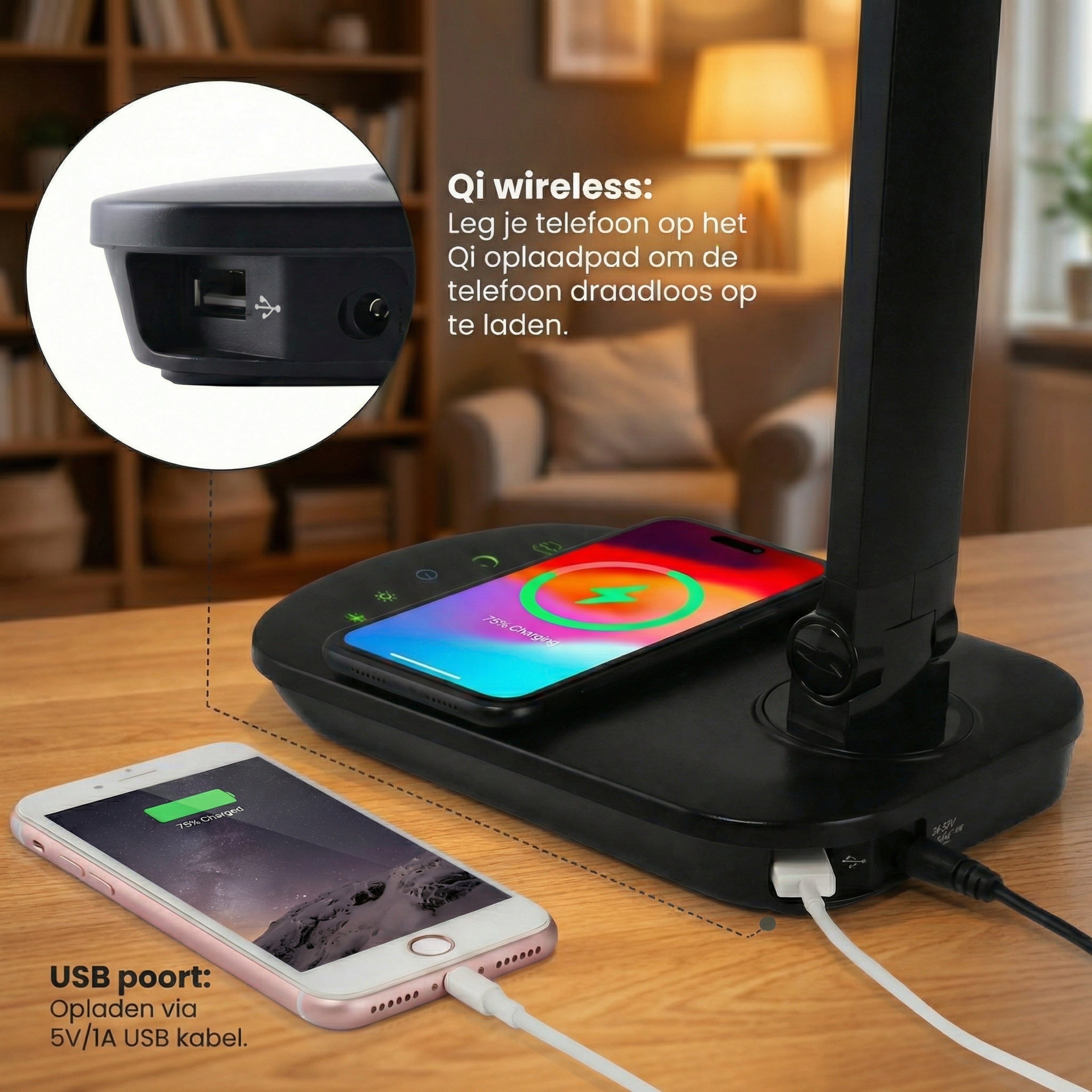 Led Bureaulamp - Dimbaar- Leeslamp -Draadloze oplader-Tafellamp